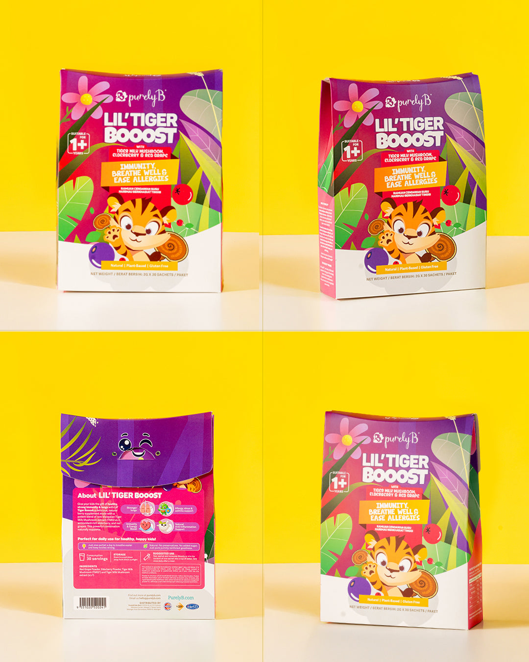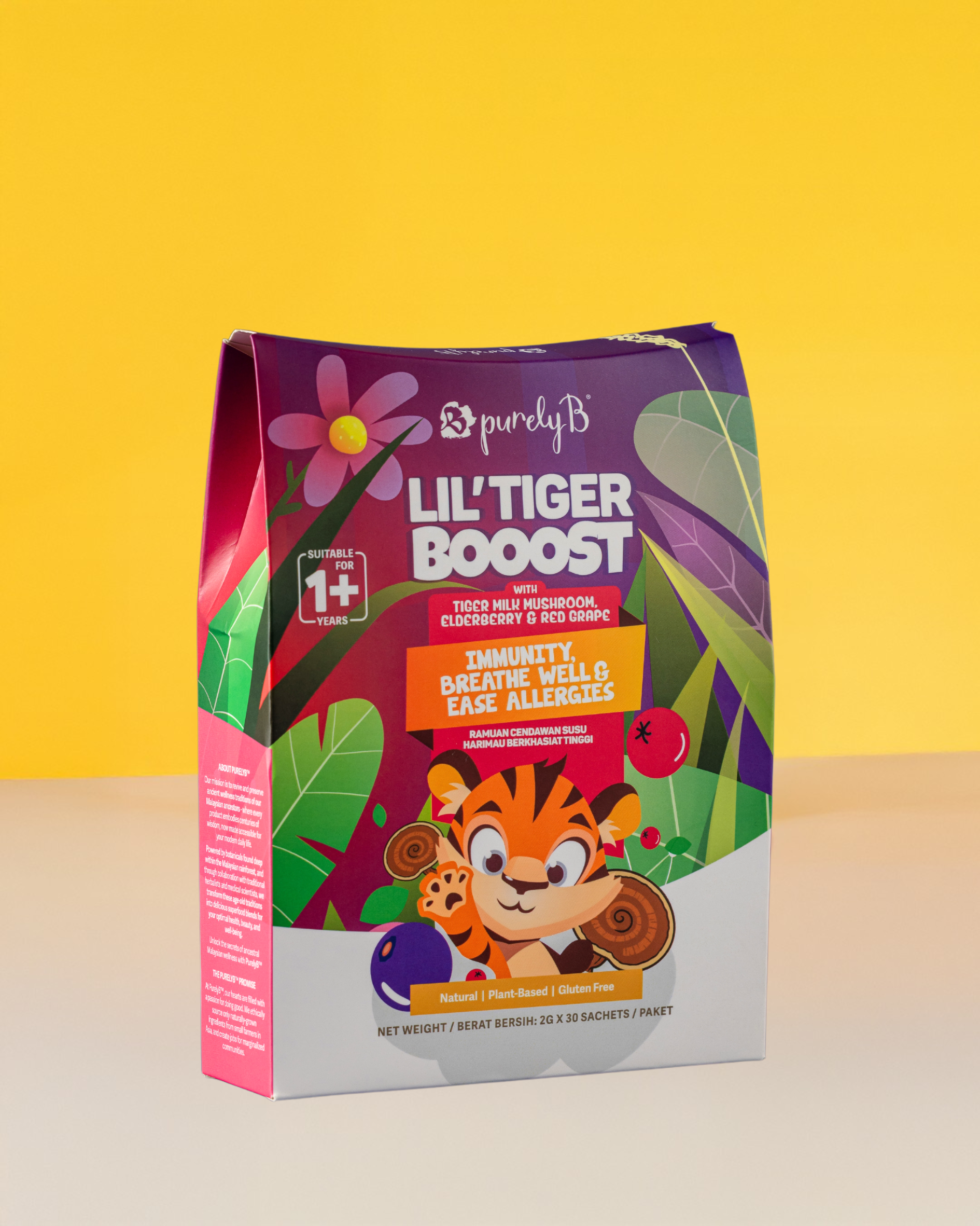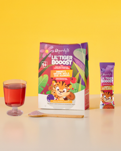 Lil Tiger Boost is a natural lung health supplement for kids made with Tiger Milk Mushroom (TM02®-xLr extract), a traditional Malaysian remedy known to support respiratory health, immunity, and allergy relief. It's blended with natural fruit powders to make it fun, safe, and easy for kids to take daily - with no added sugars or preservatives.