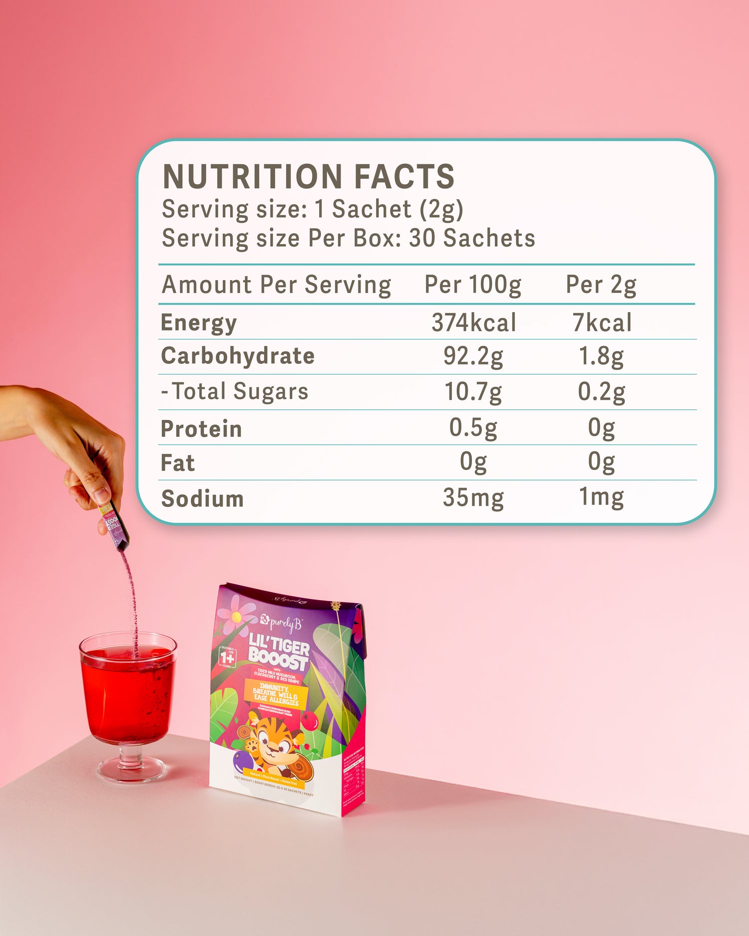 Made with only natural ingredients, Lil' Tiger Booost contains no additives, no nasties — just clean, pure, plant-based superfoods to support your child’s daily health.